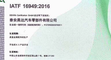 泰安昊達(dá)汽車零部件有限公司位于新泰市經(jīng)濟(jì)開發(fā)區(qū)嶅山路7號,公司成立于2011年,是一家生產(chǎn)中、重型卡車底盤鑄鍛件、焊接件、發(fā)動機(jī)配件的專業(yè)廠家,廠區(qū)占地面積101畝,2018年建設(shè)年產(chǎn)300萬件汽車零部件項(xiàng)目,項(xiàng)目總投資3.16億元,總建筑面積3.6萬平方米,是新泰市汽車裝配產(chǎn)業(yè)鏈的重點(diǎn)項(xiàng)目、2018年、2019年泰安重點(diǎn)項(xiàng)目,現(xiàn)已建設(shè)完畢,于2019年1月1日正式投入使用,設(shè)備新上覆膜砂自動化鑄造生產(chǎn)線1條、熱模鍛生產(chǎn)線6條、自動化焊接生產(chǎn)線10條、CNC加工設(shè)備200余臺套。 主要產(chǎn)品:中、重卡車底盤配件、轉(zhuǎn)向配件、中后橋氣室支架總成、中后橋配件、前橋轉(zhuǎn)向節(jié)臂、焊接配件、發(fā)動機(jī)配件。產(chǎn)品主要銷往中國重汽集團(tuán)、市場份額約50%,位居行業(yè)鑄件產(chǎn)品前三。 公司擁有IATF16949:2016國際標(biāo)準(zhǔn)質(zhì)量管理體系認(rèn)證,擁有實(shí) ......